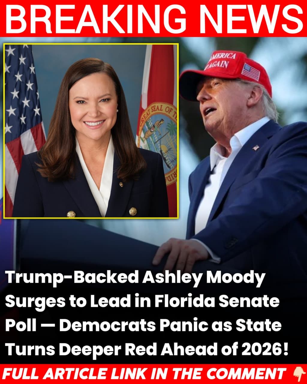 Ashley Moody, Florida’s former Attorney General who was appointed to the U.S. Senate in early 2025 after Marco Rubio joined President Trump’s administration, has quickly solidified herself as one of the most influential conservative voices in the state. Her appointment brought immediate credibility to her campaign, and Trump’s full endorsement in July 2025 helped turn that credibility into commanding political strength. The former president’s influence among Florida Republicans remains unmatched, and his backing has clearly resonated with voters across the state.