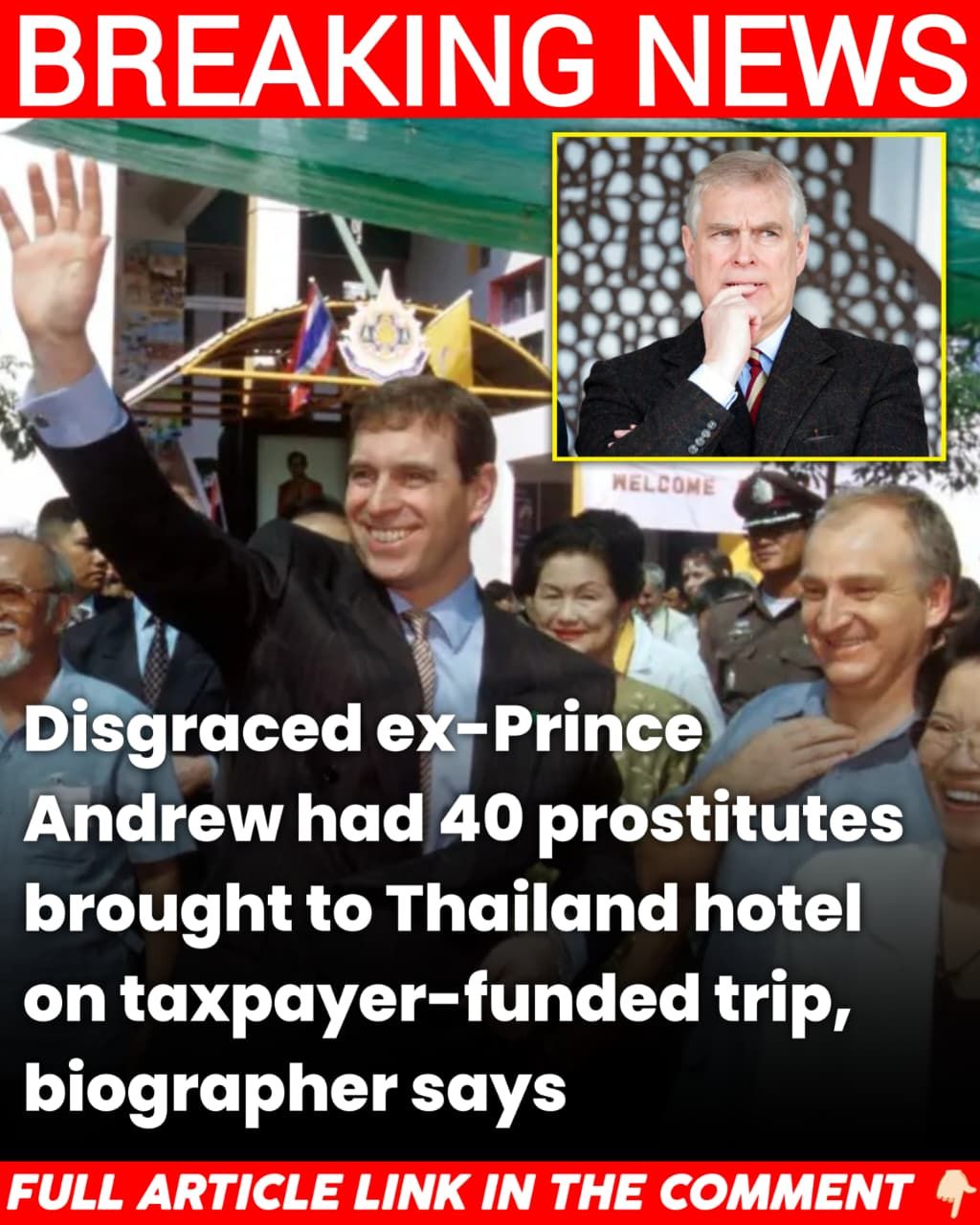 New explosive allegations have surfaced regarding Prince Andrew’s conduct during a UK‐government funded diplomatic visit to Thailand in the early 2000s, claims that now threaten to deepen a scandal already defined by the prince’s fallout from his ties to Jeffrey Epstein. In his unauthorised biography The Rise and Fall of the House of York, royal author Andrew Lownie alleges that while serving as the UK’s Trade Envoy (2001–2011), the prince organised for 40 prostitutes to be delivered to his five-star hotel over the course of a four-day trip—an excursion officially funded by British taxpayers.