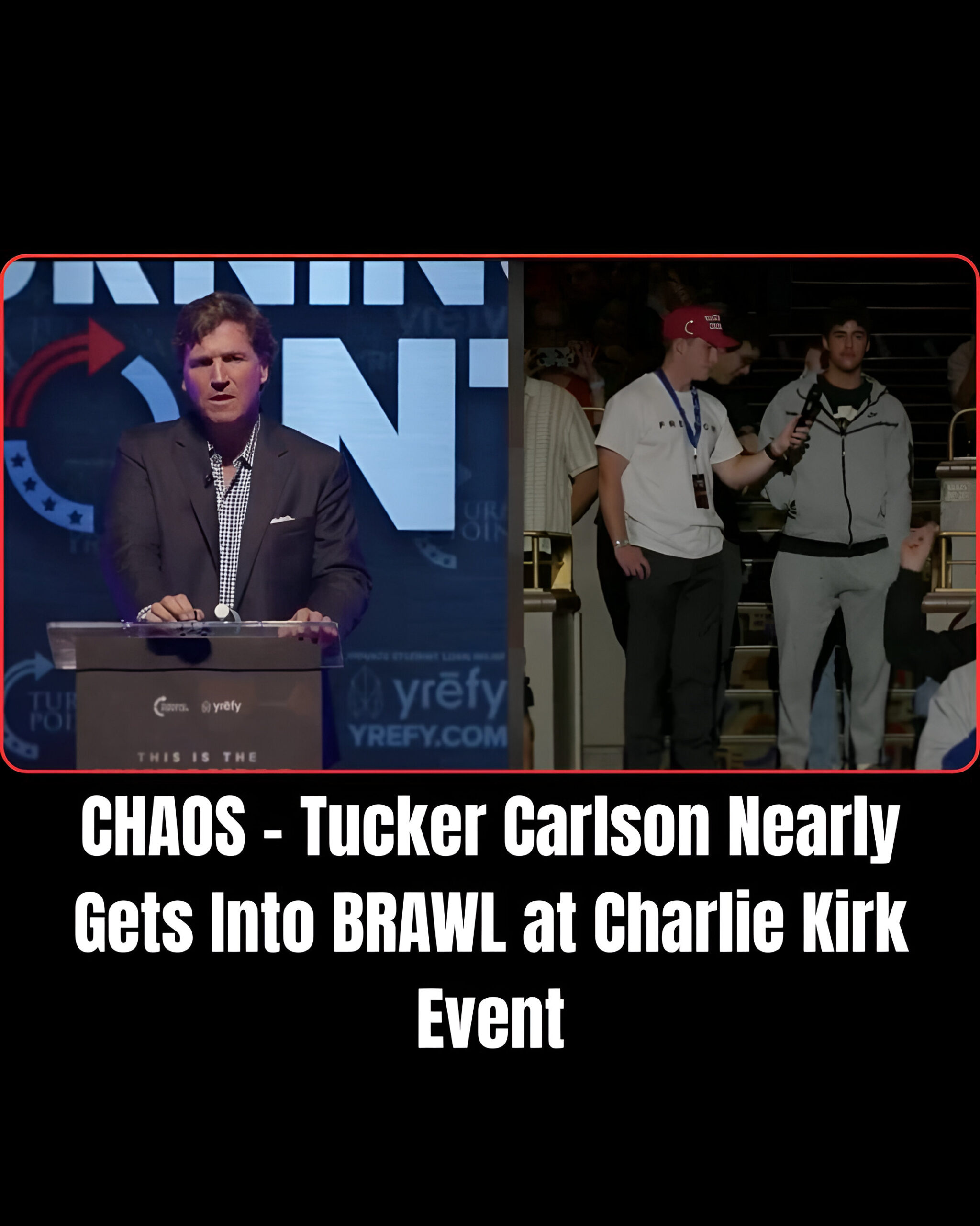 During a Turning Point USA debate at Indiana University Bloomington, Carlson threatened to “kick” a student’s “a**” after he accused Carlson’s late father of working for the CIA.
